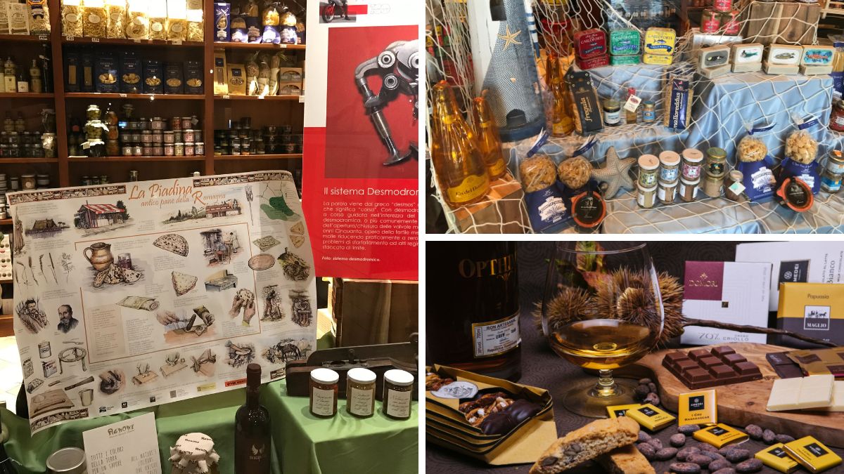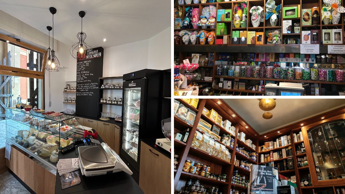Nella bottega c’è dal salato al dolce, un piccolo angolo dei prodotti freschi, e per finire l’enoteca.