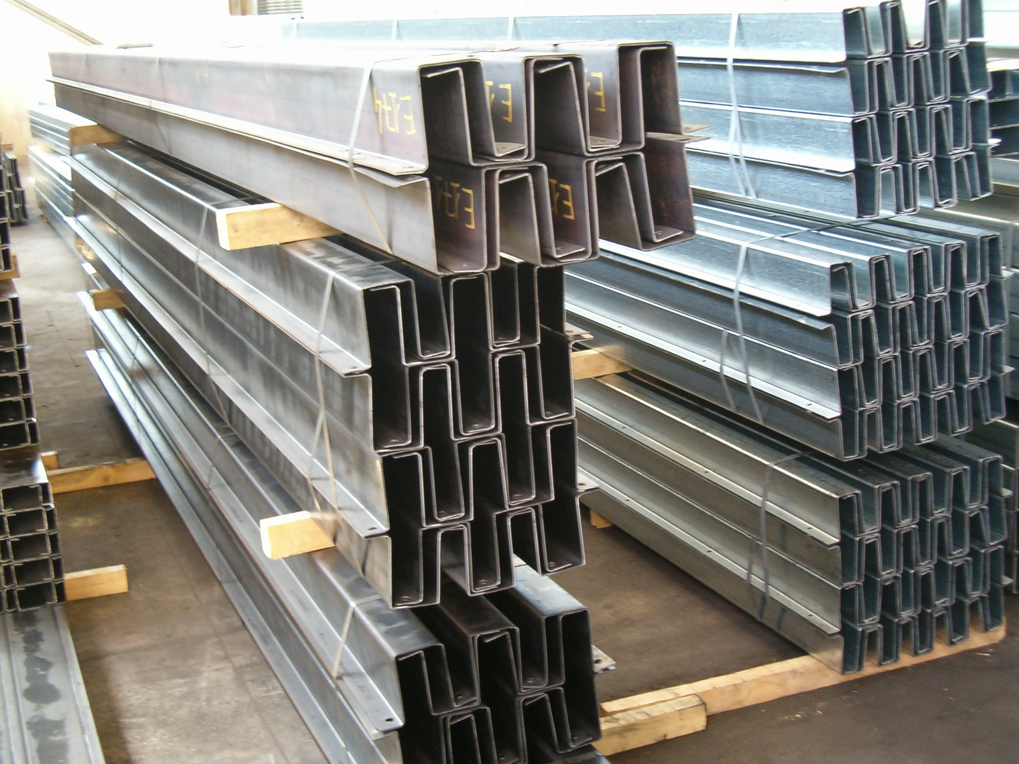 Profilati in ferro aperti tagliati e forati a misura, ottenuti a freddo da profilatura di nastri neri, zincati,