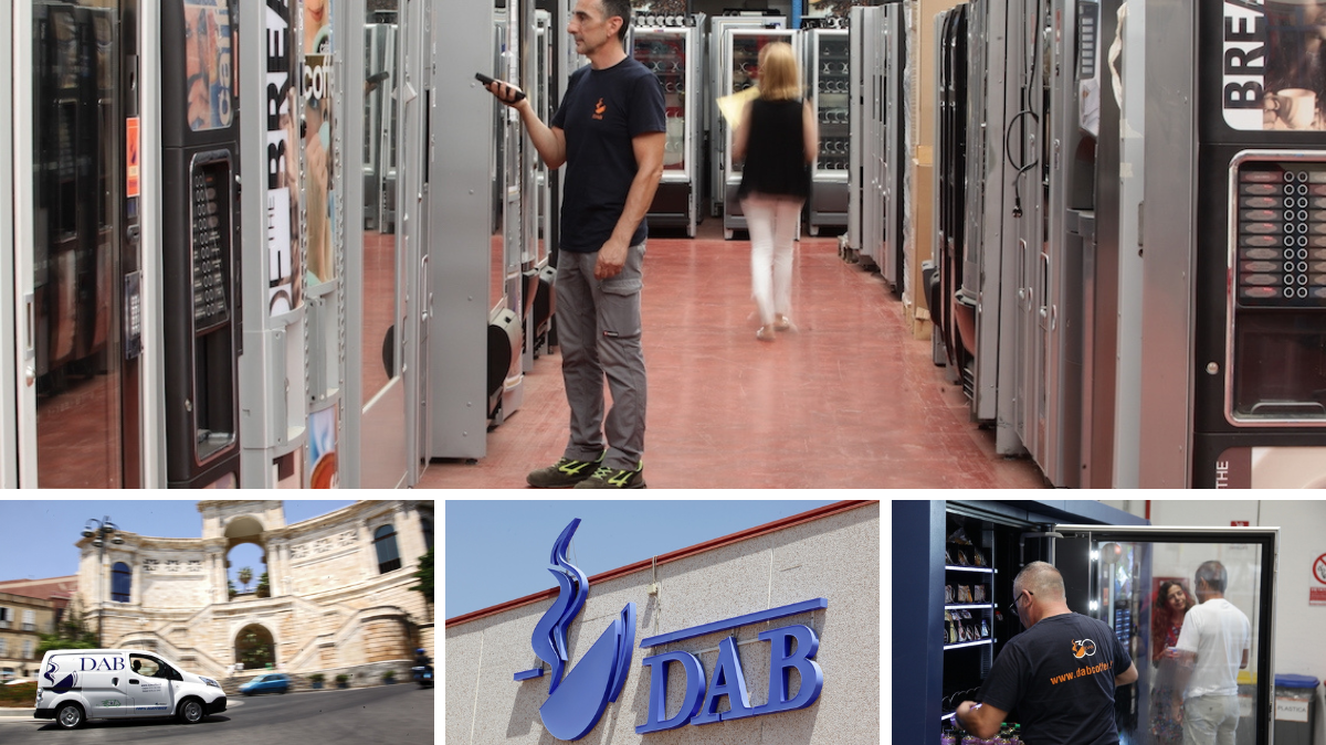 La DAB s.r.l. è un’azienda sarda leader da trent’anni nel settore della ristorazione automatica, specializzata nell’installazione, rifornimento e manutenzione dei distributori automatici di alimenti e bevande calde e fredde. Nel corso degli anni la voglia di fornire un servizio sempre migliore e più adeguato alle esigenze dei clienti ci ha portati a sviluppare progetti nuovi ed all’avanguardia cercando di coniugare tecnologia, interconnessione e salvaguardia dell’ambiente. Oltre a disporre di una vasta gamma di distributori automatici e semi automatici, nonché di colonnine refrigeranti, di cui gestisce il servizio presso Aziende, Enti Pubblici, Ospedali, Università, Scuole e Aziende Private, la DAB srl offre macchine da caffè con sistema a cialde a esercizi commerciali e famiglie, sia originali che compatibili, ideali per i principali sistemi presenti sul mercato. Rapidità ed efficienza valgono alla DAB srl la preferenza di migliaia di clienti che trovano così un partner sicuro ed affidabile per il consumo automatico. La sede principale è situata nella zona industriale di Elmas (CA), dove si trovano gli uffici amministrativi, il deposito merci per il vending e le officine per l’assistenza tecnica. All’interno del nostro elegante punto vendita di Sassari è possibile trovare un’ampia scelta di caffè e bevande in Capsule e Cialde.